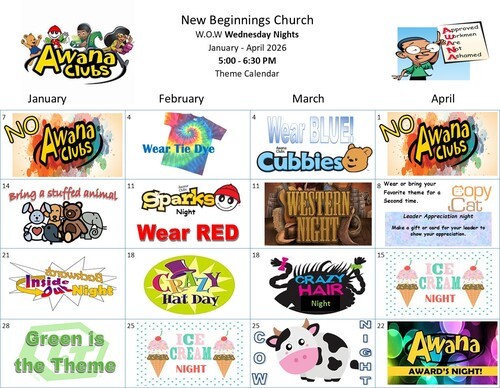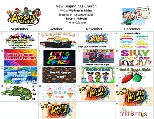 New Beginnings Church is using Awana curriculum, W.O.W. Wednesdays is a partnership between students, leaders and parents. We work together to develop spiritually strong children who learn that they can be dedicated followers of Jesus Christ. Weekly lives are being changed by hiding God's word in their hearts through memorizing scripture, listening to lessons from the Bible and enjoying interactive game time.